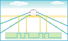 In addition, the marked area is divided into individual lines. Line by line, the software analyses the differences in the grey levels. Let's consider a roadway with markings on left-hand and right-hand side. If the greyscale levels in a line differ significantly, the software places a marker at that location. Cameras can recognize up to 4096 different grey levels.