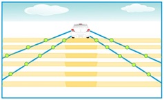 Once all lines have been scanned and the markings have been set, the software uses them to calculate the virtual lane. The image processing rate is 25 frames per second. The outer markings can be viewed as a secondary lane or the edge of the lane, depending on how the software works.